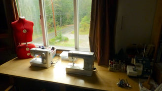 Our upstairs main room has a large boardroom style meeting table. A sewing section, a vinyl cutter, a 3d printer, and a video projector for watching media in a group setting. A full kitchen as well!